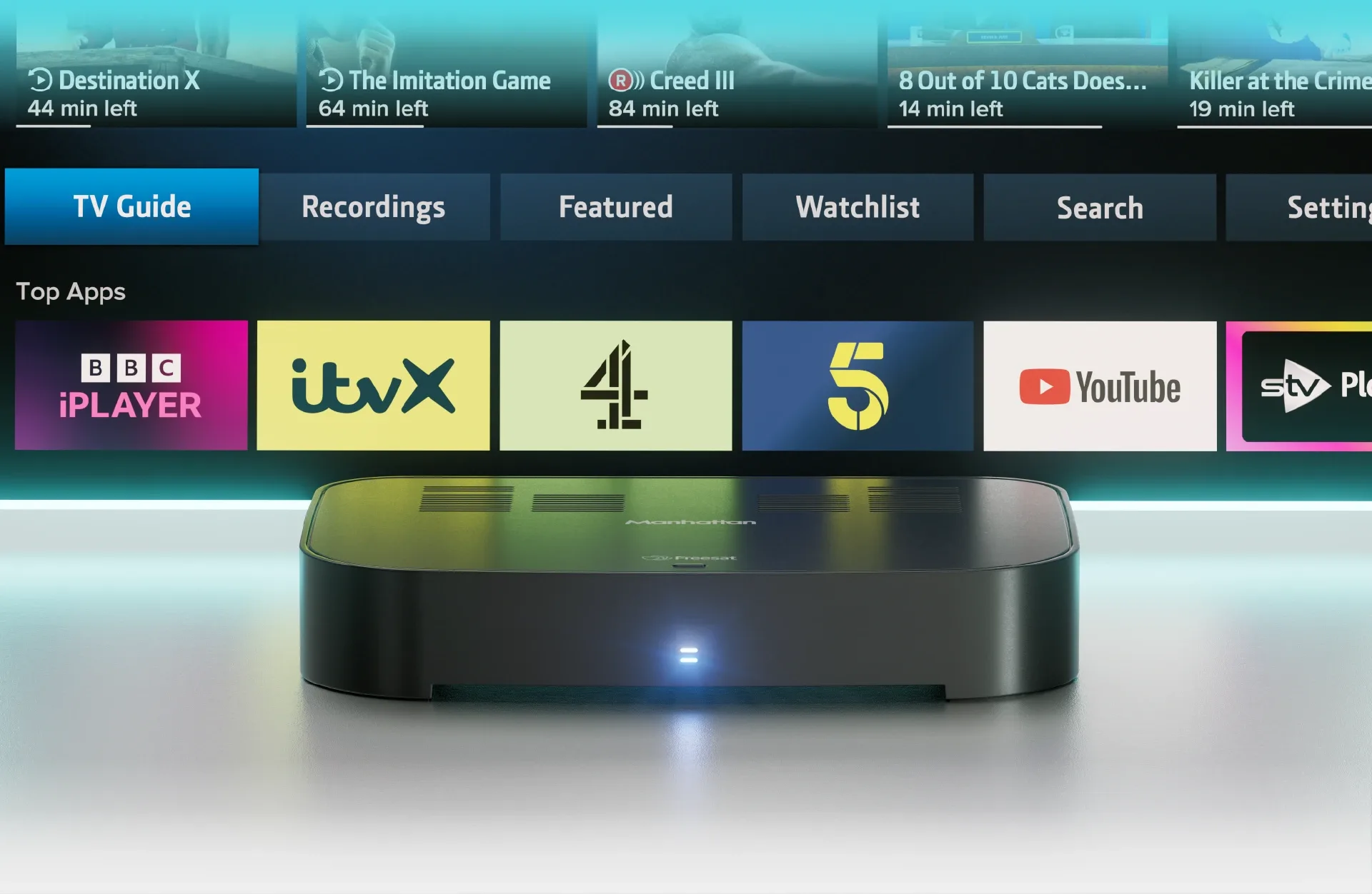 The complete Freesat recorder. Enjoy 100+ channels with over 35 in HD, record up to four at once, and stream BBC iPlayer, ITVX, YouTube and more – all with no monthly bills.